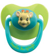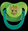 Skøn 2 pak. sutter med fint Sophie Giraf ansigt på forsiden af sutten, i grøn/blå farvekombination. Sutten er anatomisk formet, og er selvlysende om natten, så den lettere kan findes i mørket. Egnet fra ca. 18 mdr.