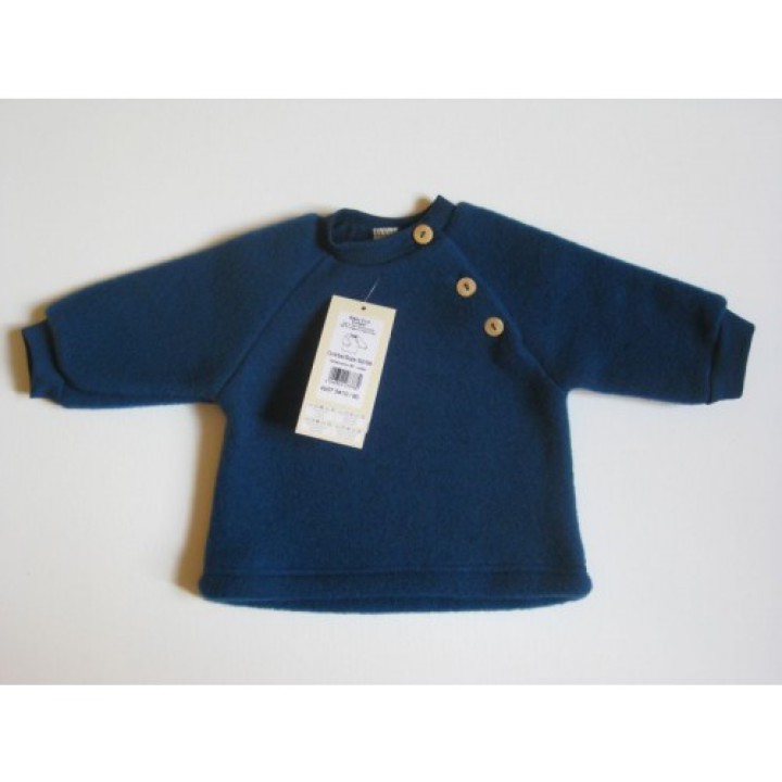 Engel Natur Økologisk Vamset trøje med knapper i siden ved halsen. Super blød og lækker i skøn dyb blå farve i økologisk uldfleece. Luner dejligt under flyverdragten eller alene på kølige overgangstider eller sommeraftener.